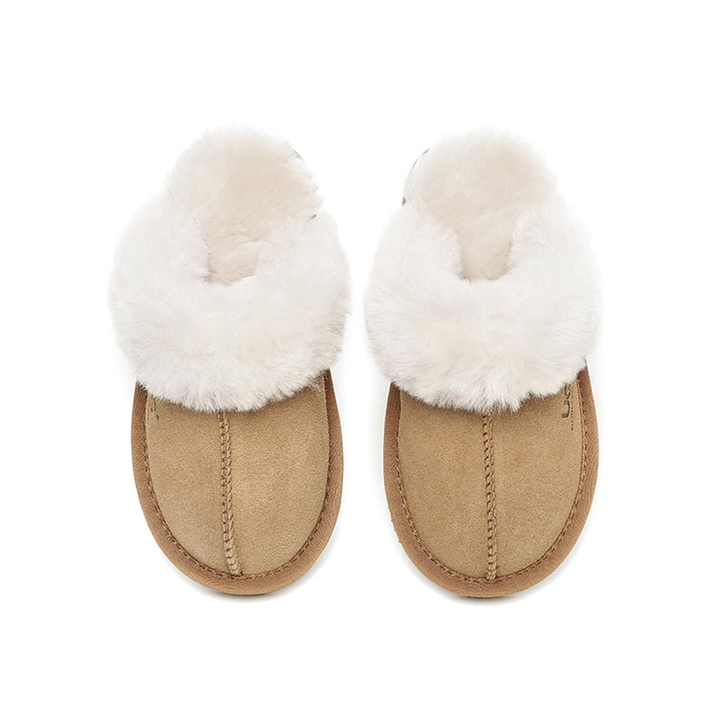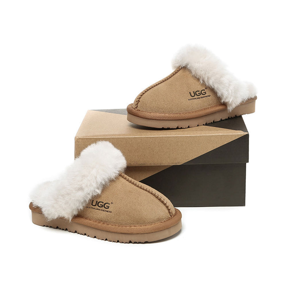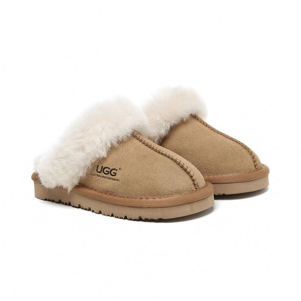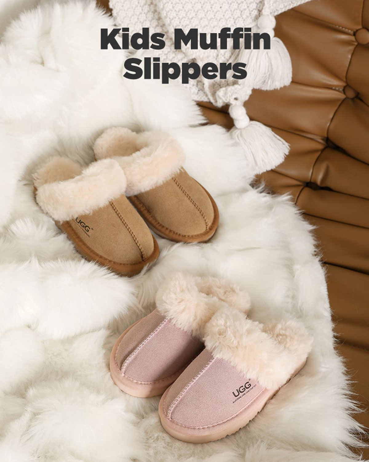 키즈 머핀 UGG 슬리퍼는 추운 겨울철 아이의 발을 따뜻하게 감싸주는 부드러운 양가죽으로 제작되었습니다. 신발의 외피는 나노 코팅 처리가 되어 있어 액체와 얼룩을 방지해주며, 피부 친화적인 양가죽 안감은 편안하고 부드러운 착용감을 제공합니다.