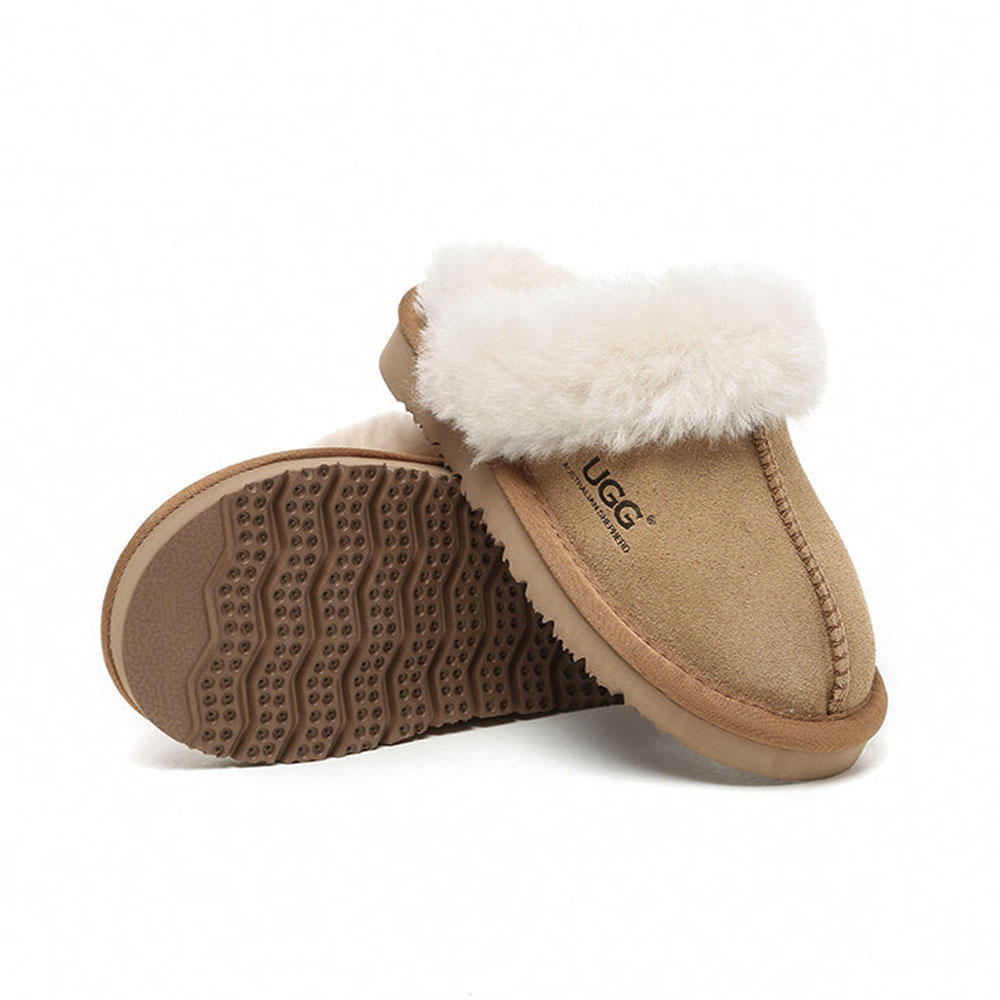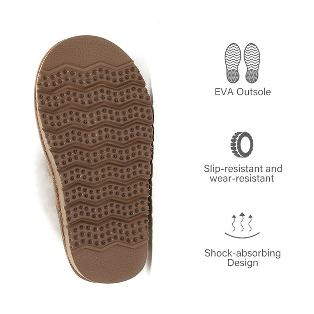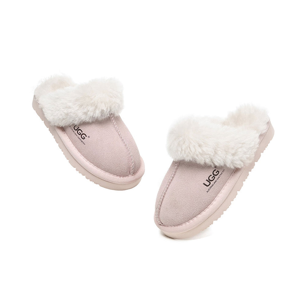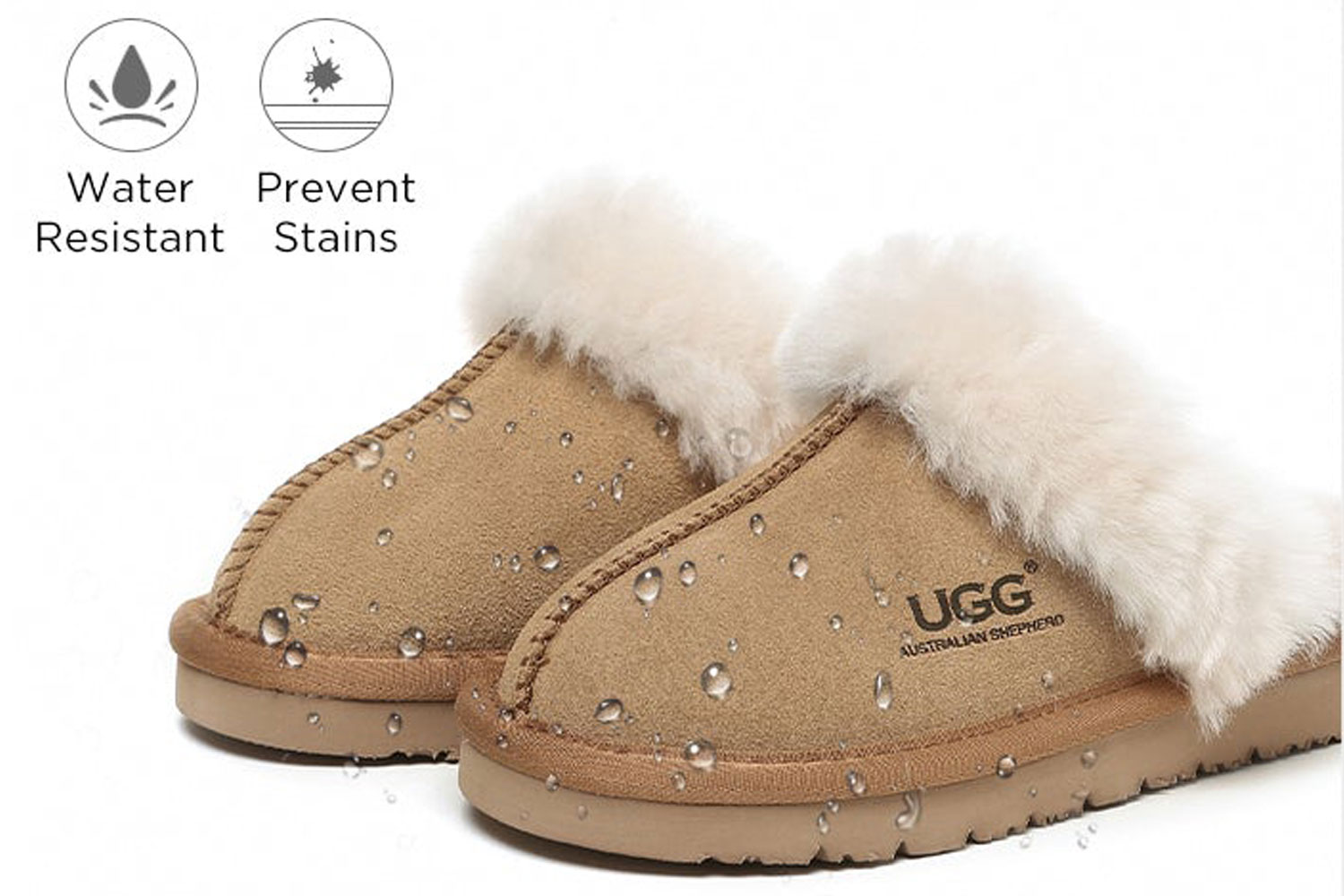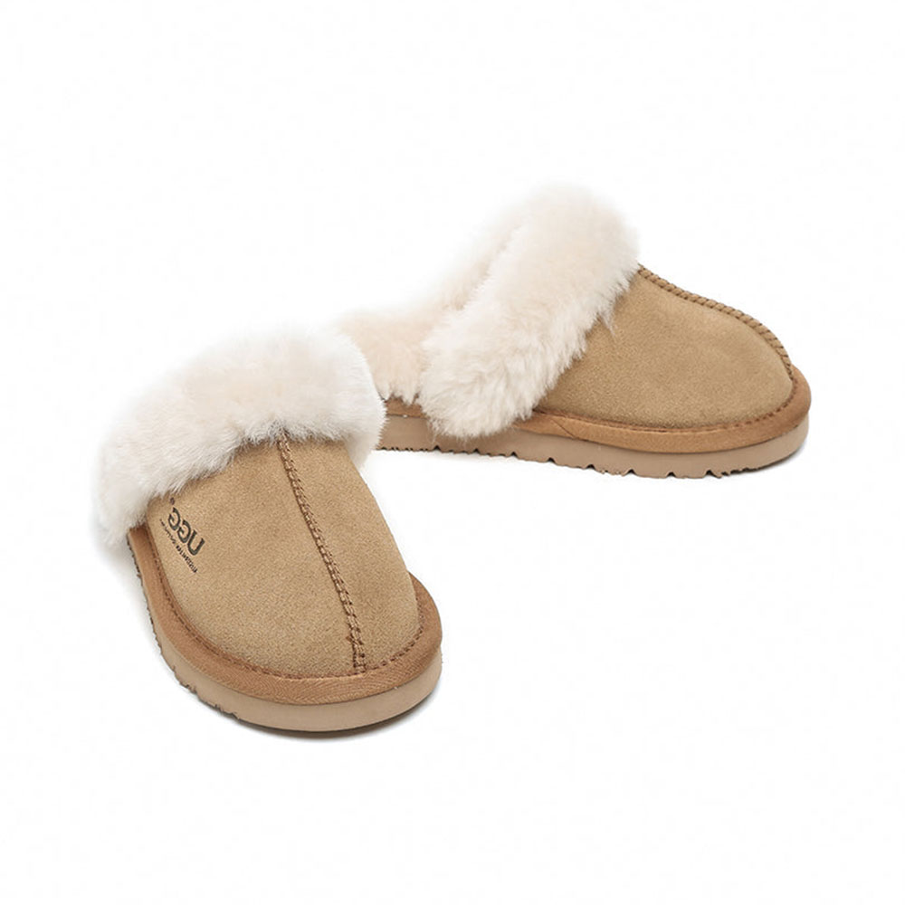 키즈 머핀 UGG 슬리퍼는 추운 겨울철 아이의 발을 따뜻하게 감싸주는 부드러운 양가죽으로 제작되었습니다. 신발의 외피는 나노 코팅 처리가 되어 있어 액체와 얼룩을 방지해주며, 피부 친화적인 양가죽 안감은 편안하고 부드러운 착용감을 제공합니다.
