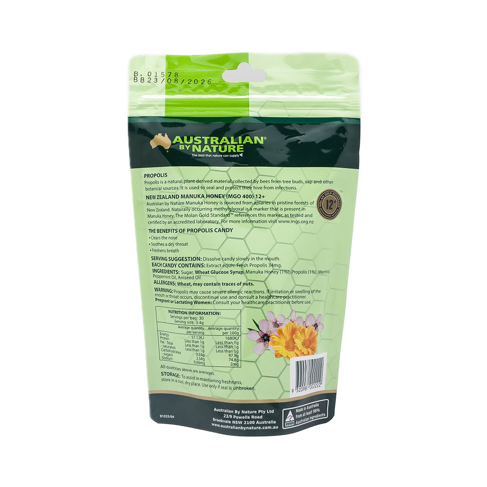 마누카꿀 12+ MGO 400 프로폴리스 캔디는 호주 청정 자연에서 얻은 프리미엄 마누카꿀과 프로폴리스를 함유한 캔디 타입 건강 보조 식품입니다.