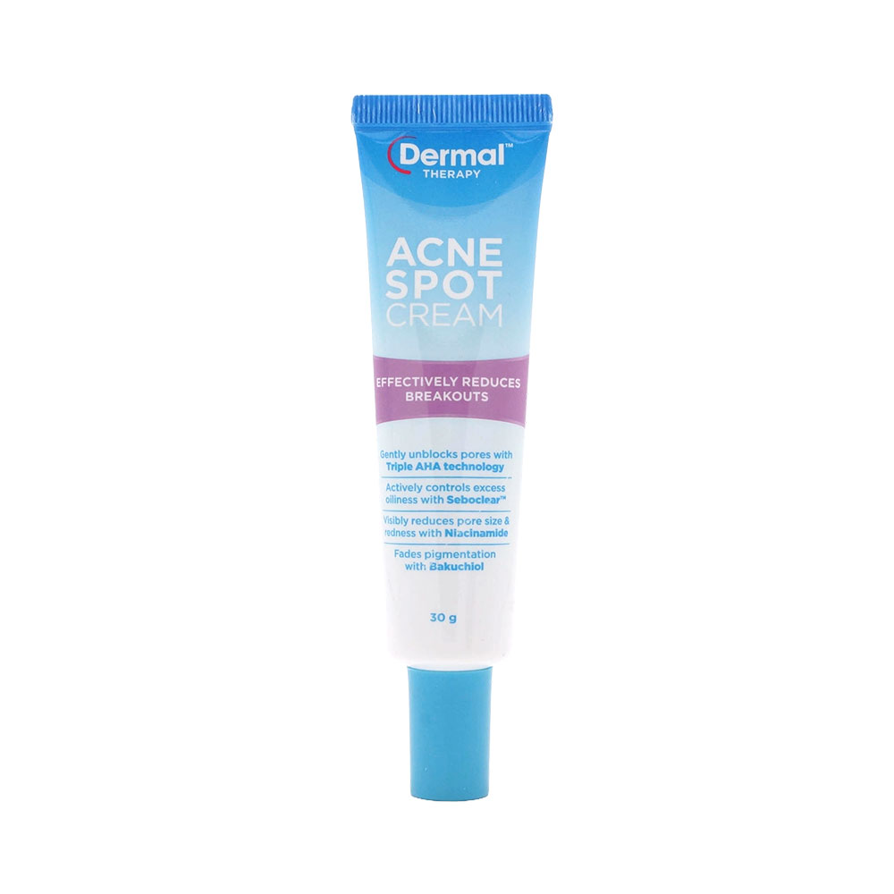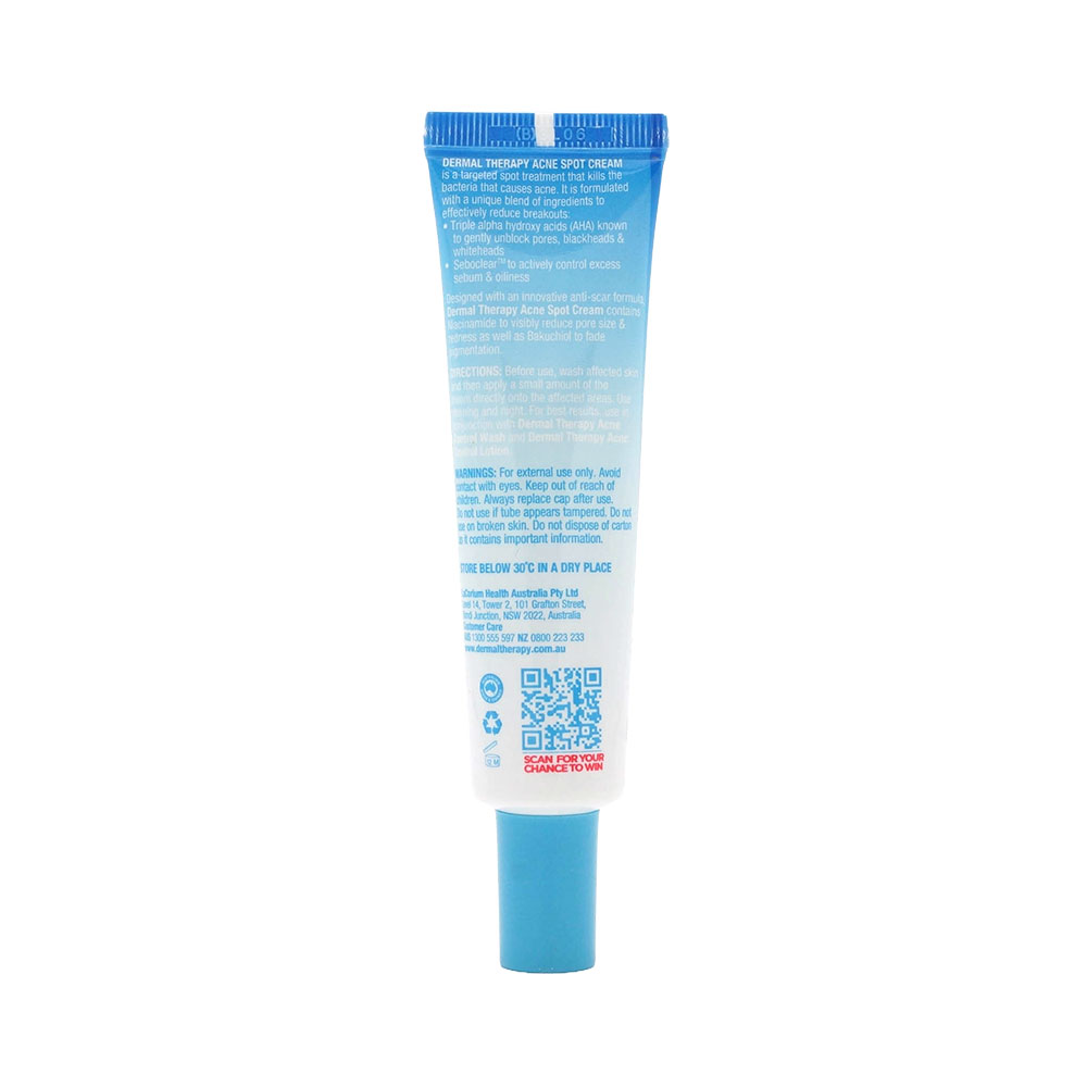 더말테라피 아크네 스팟 크림은 여드름 및 트러블 부위를 집중적으로 관리하기 위해 특별히 개발된 스팟 전용 크림입니다. 트리플 AHA 성분이 모공, 블랙헤드, 화이트헤드를 부드럽게 제거해주며, Seboclear™가 과도한 피지와 번들거림을 효과적으로 컨트롤합니다. 또한, 니아신아마이드는 모공 크기와 붉은기를 완화하고, 바쿠치올은 색소 침착과 자국 완화에 도움을 줍니다. 항흉터 포뮬러로 트러블로 인한 흉터 예방에도 효과적이며, 퍼옥사이드와 살리실산을 함유하지 않아 민감성, 지성, 여드름 피부에도 부담 없이 사용할 수 있습니다.