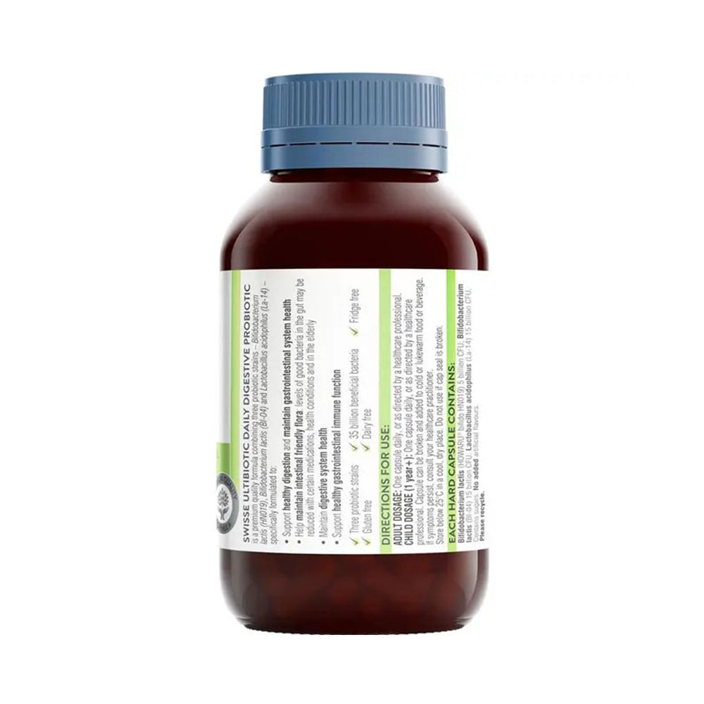 Swisse 스위스 울티바이오틱 소화 유산균은 캡슐당 350억 CFU의 유산균이 함유되어 건강한 소화를 돕고 장내 유익균의 균형을 유지하는 데 기여합니다.