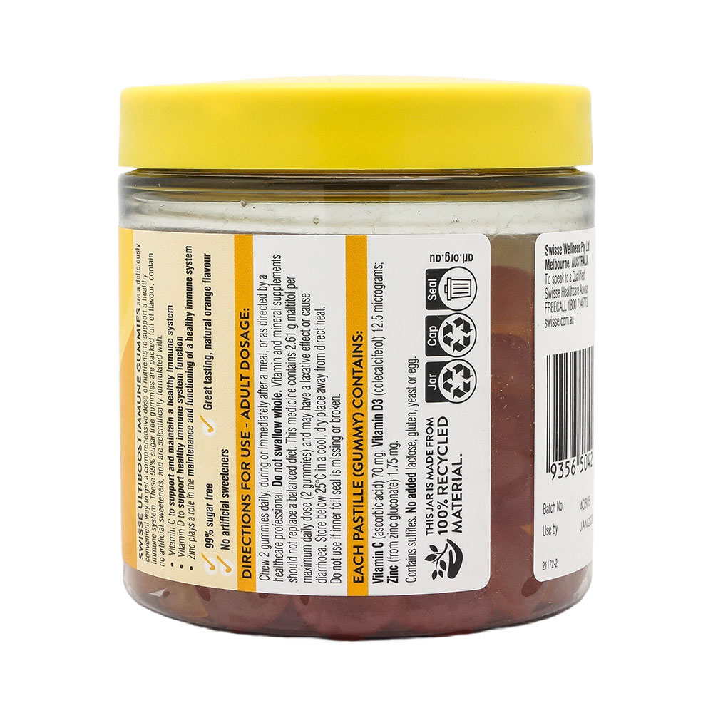 Swisse 울티부스트 면역 구미는 정제 대신 맛있는 오렌지 맛 구미로 간편하게 면역 건강을 챙길 수 있는 제품입니다. 비타민 C, D3, 아연이 함유되어 있어 면역 기능을 강화하고 질병에 대한 저항력을 높이는 데 도움을 줍니다.